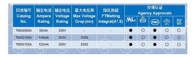 產(chǎn)品名稱: TMS方形塑封微型保險(xiǎn)絲(350V 慢斷 UL/cUL)