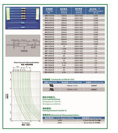 產(chǎn)品名稱: 電阻式保險(xiǎn)絲SFB 3.0*7.2mm 環(huán)氧涂層(快斷型)