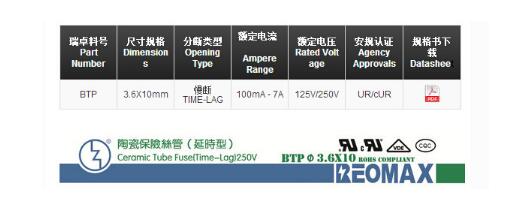 產(chǎn)品名稱: BTP 3.6*10 陶瓷慢斷保險絲