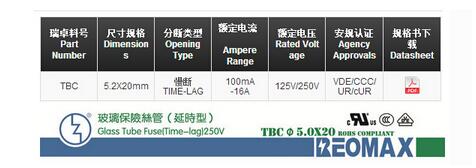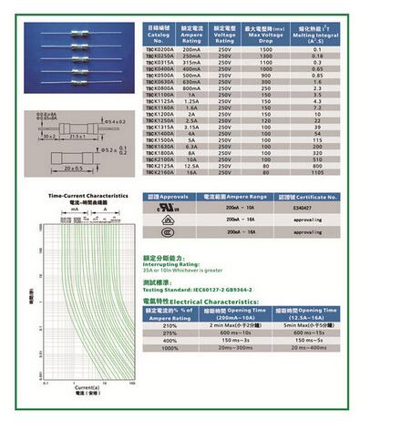產(chǎn)品名稱: TBC 5.0*20玻璃慢斷保險絲