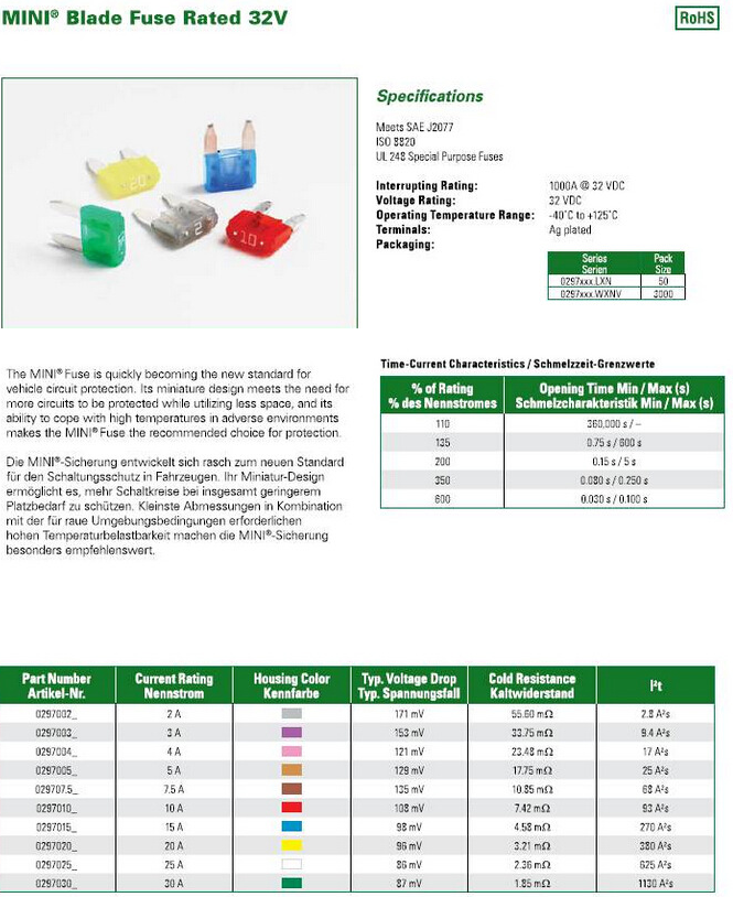 產品名稱: 汽車保險絲Mini Blade Fuse認證齊全