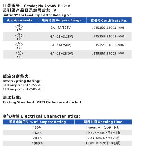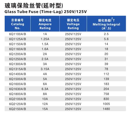 產(chǎn)品名稱: 6Q Φ6.35×30 玻璃慢斷保險絲 PSE認證