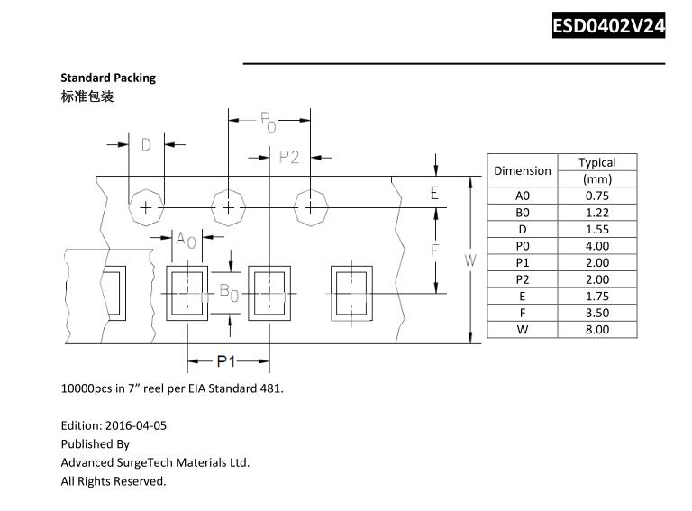 簡述: Base on Polymer Voltage Variable Material, for ESD protection with ultra-low capacitance. 0402(1005) chip size.