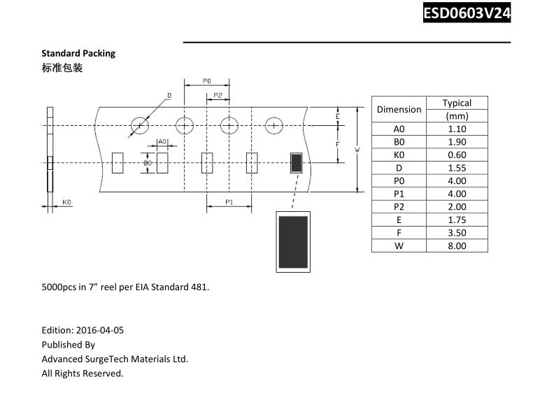 簡(jiǎn)述: Base on Polymer Voltage Variable Material, for ESD protection with ultra-low capacitance. 0603 chip size.
