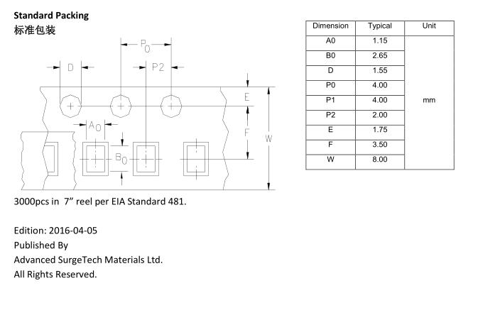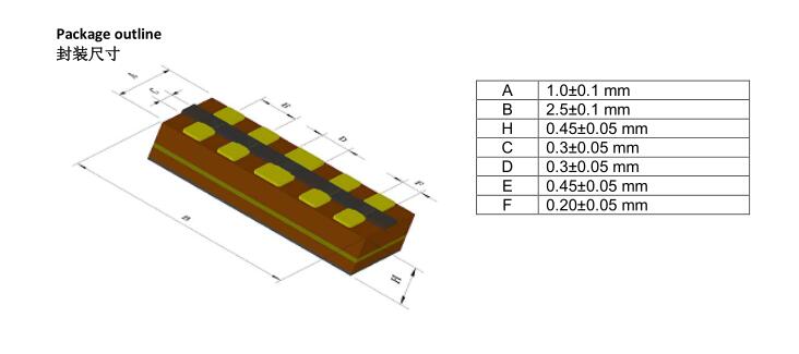 簡(jiǎn)述: Base on Polymer Voltage Variable Material, for ESD protection with ultra-low capacitance. 2510 chip size, 4 channel 2510尺寸, 4通道