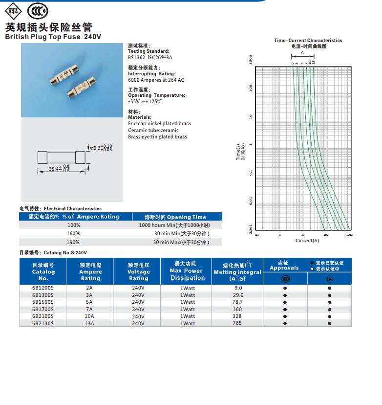 產(chǎn)品名稱: BS1362英式插頭保險(xiǎn)絲
