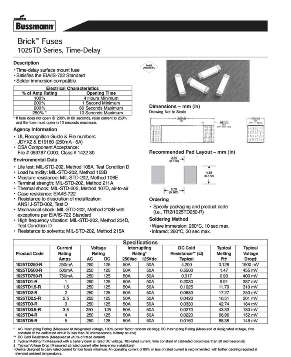 產(chǎn)品名稱(chēng): bussmann 1025TD慢斷貼片保險(xiǎn)絲 一次性貼片保險(xiǎn)絲