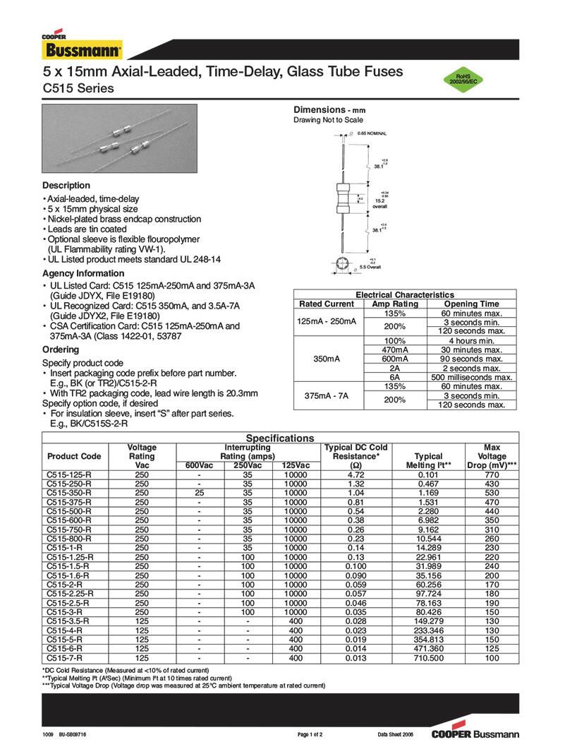 產(chǎn)品名稱: bussmann C515 玻璃管保險絲 型號規(guī)格齊全