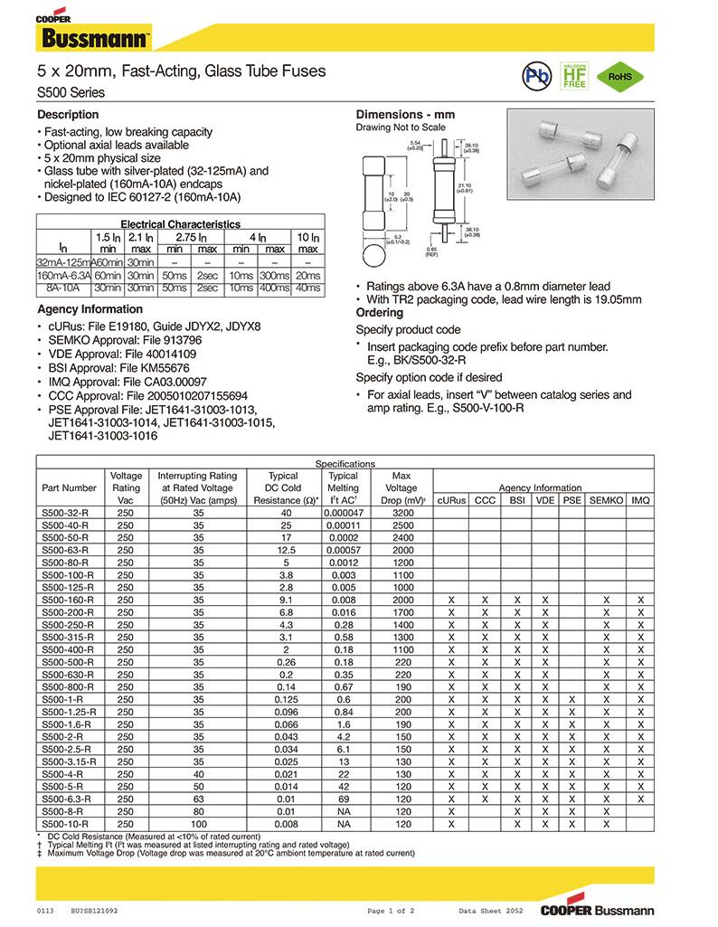 產(chǎn)品名稱: S500 5*20mm 250V 快斷 玻璃管保險(xiǎn)絲