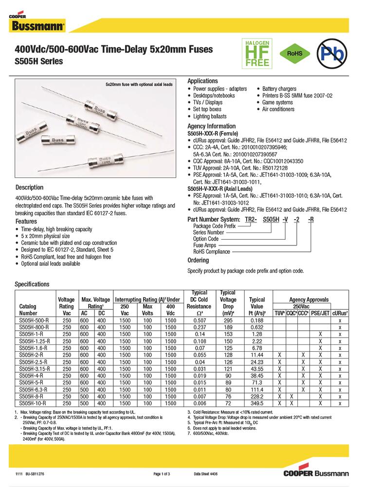 產(chǎn)品名稱(chēng): S505H 500VAC 5*20 高分?jǐn)?慢斷陶瓷