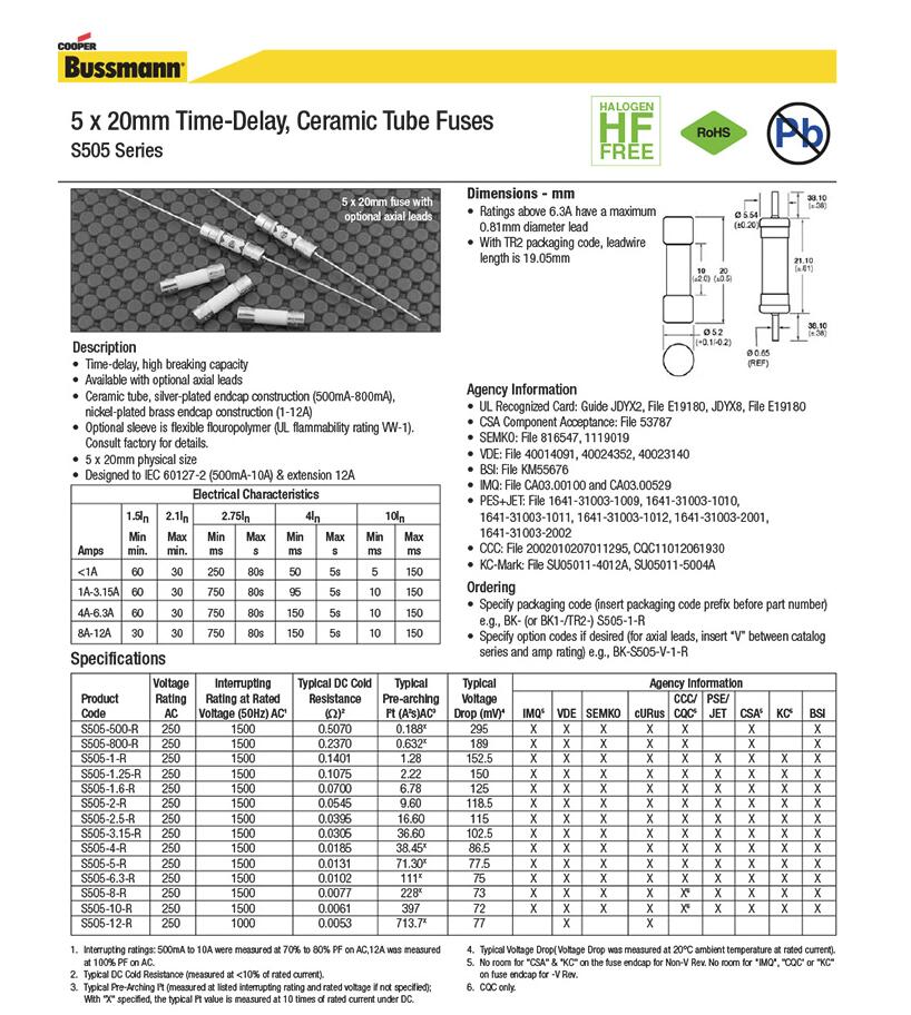 產(chǎn)品名稱: S505 慢斷 陶瓷管 電流保險絲