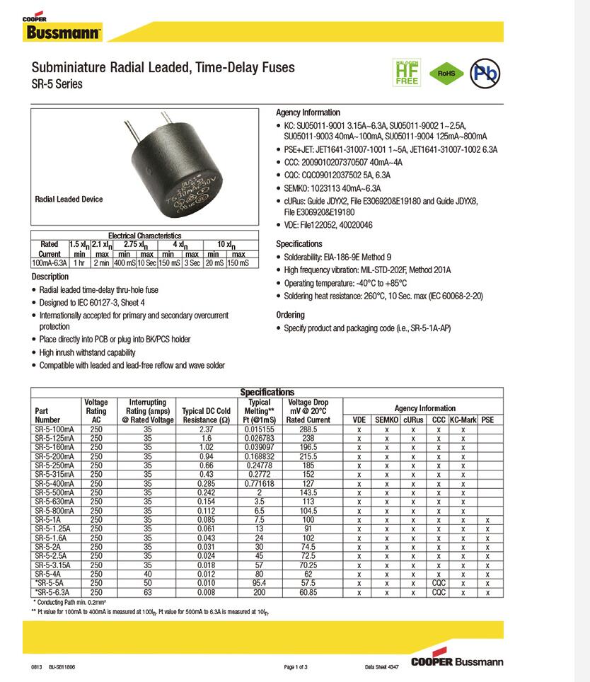 產(chǎn)品名稱(chēng): SR-5-1A-AP 插件保險(xiǎn)絲 小黑豆插件保險(xiǎn)