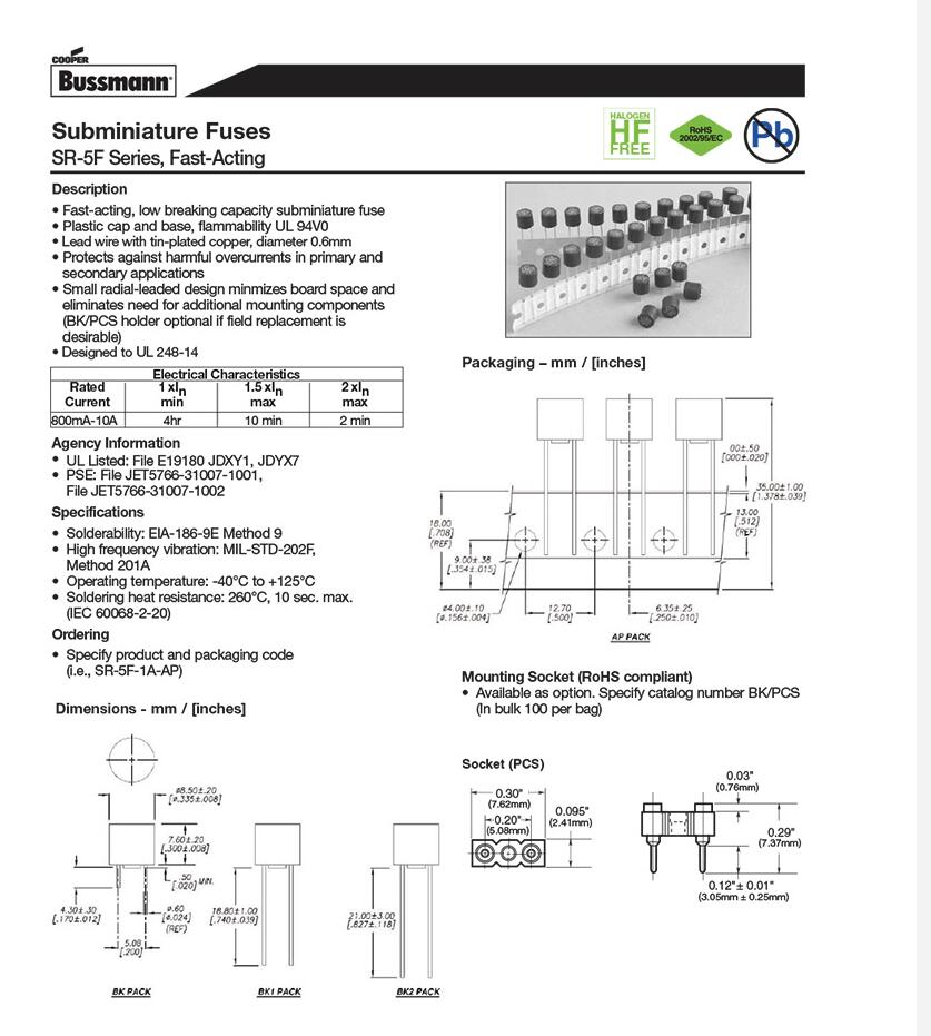 產(chǎn)品名稱: SR-5F-AP 250V 黑色 小小豆 圓形保險絲
