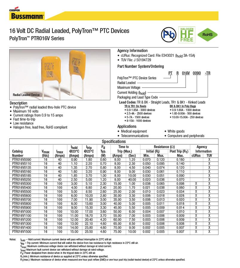 產(chǎn)品名稱: PTR016V0090 自恢復插件保險絲 黃色可恢復