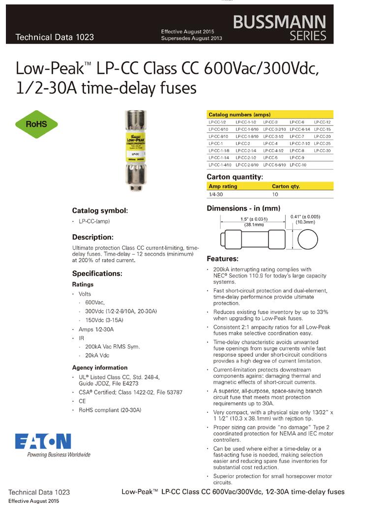 產(chǎn)品名稱: BUSSMANN LP-CC-15 10.338.1mm熔斷器