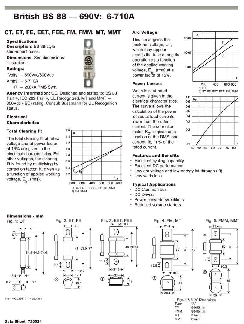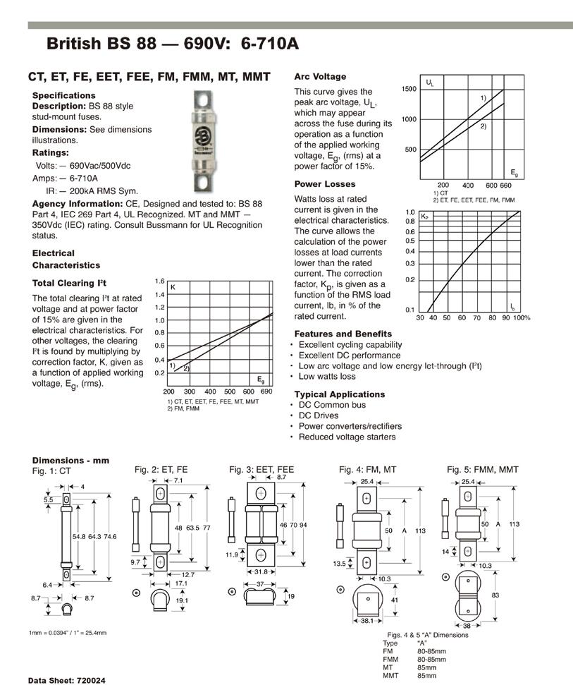 產(chǎn)品名稱: BUSSMANN BS88 35FE 35A690V熔斷器