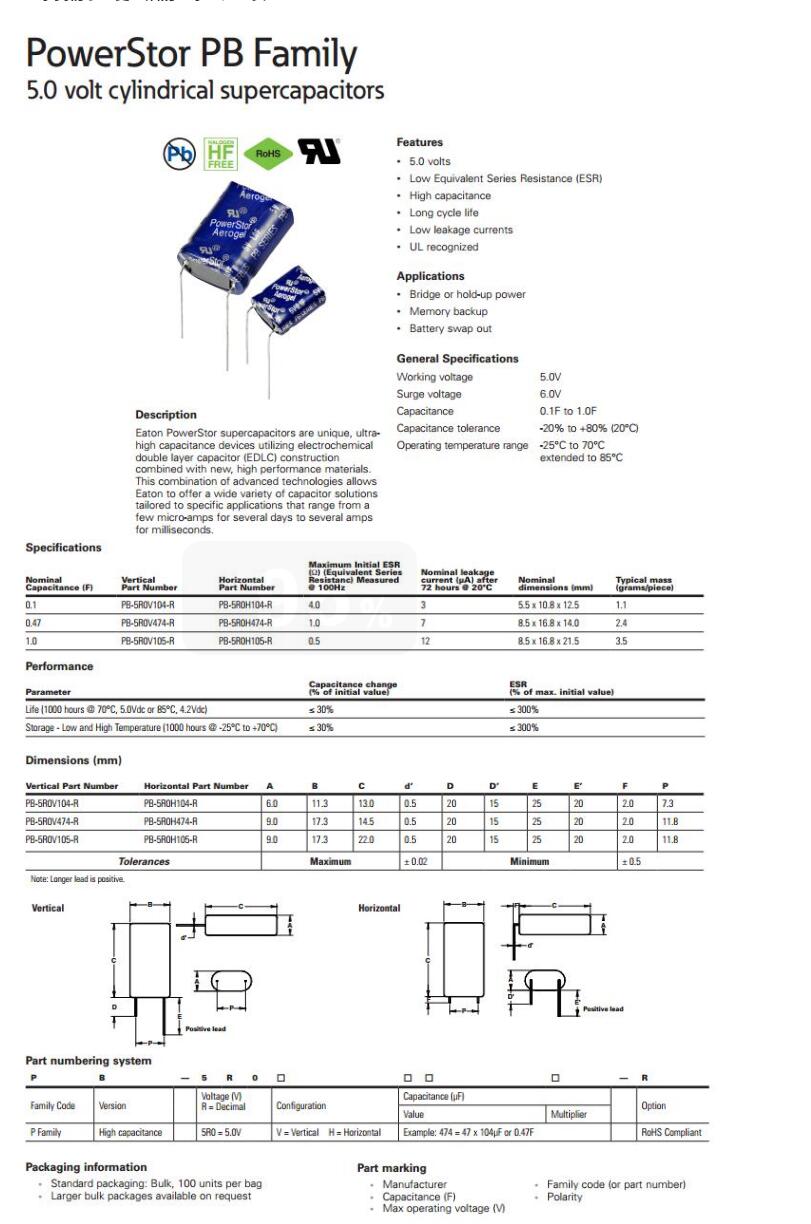 產(chǎn)品名稱: BUSSMANN PB系列超級(jí)電容