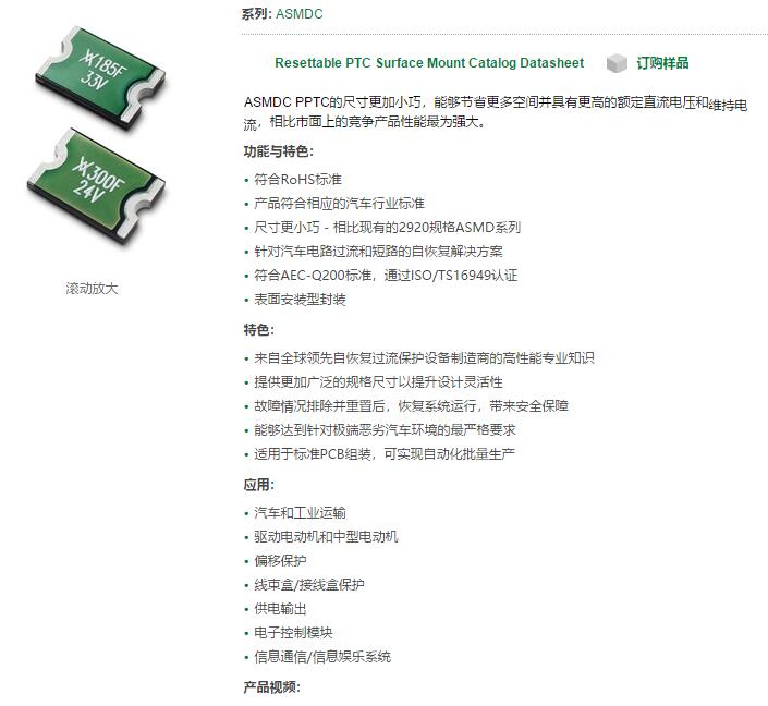 產(chǎn)品名稱: ASMDC 系列 - PolySwitch汽車用2920規(guī)格無鉛表面貼裝式自恢復(fù)PPTC