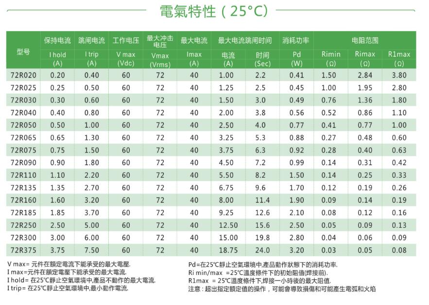 產品名稱: 72V自恢復保險絲