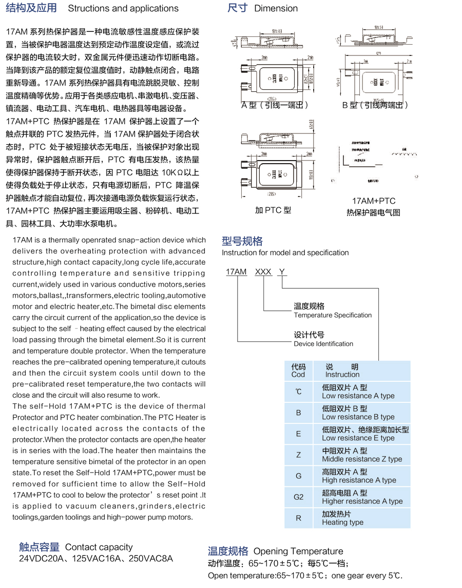 簡(jiǎn)述: 17AM系溫控器 17AM series thermal protector