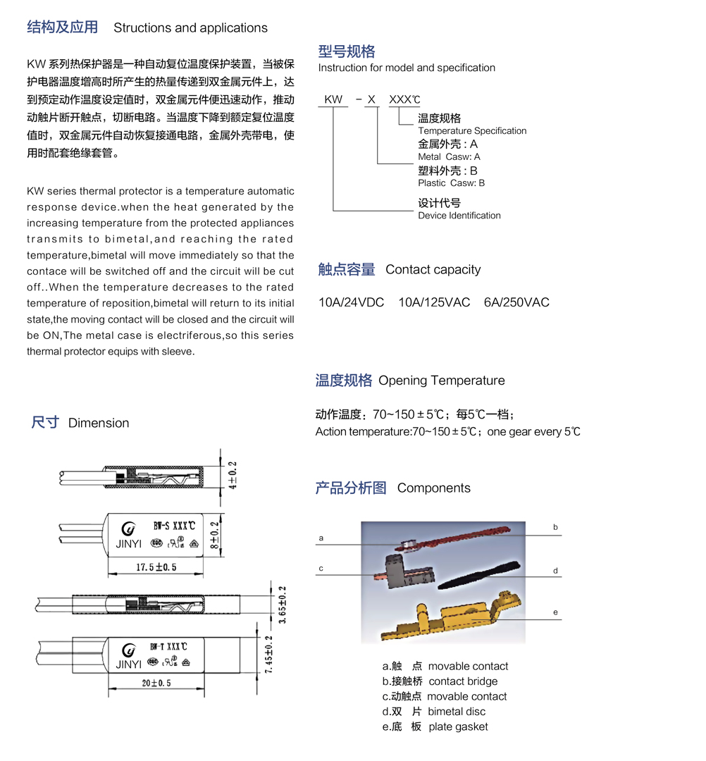 產(chǎn)品名稱: KW 系列溫控器 溫度開關(guān) KW series thermal protector