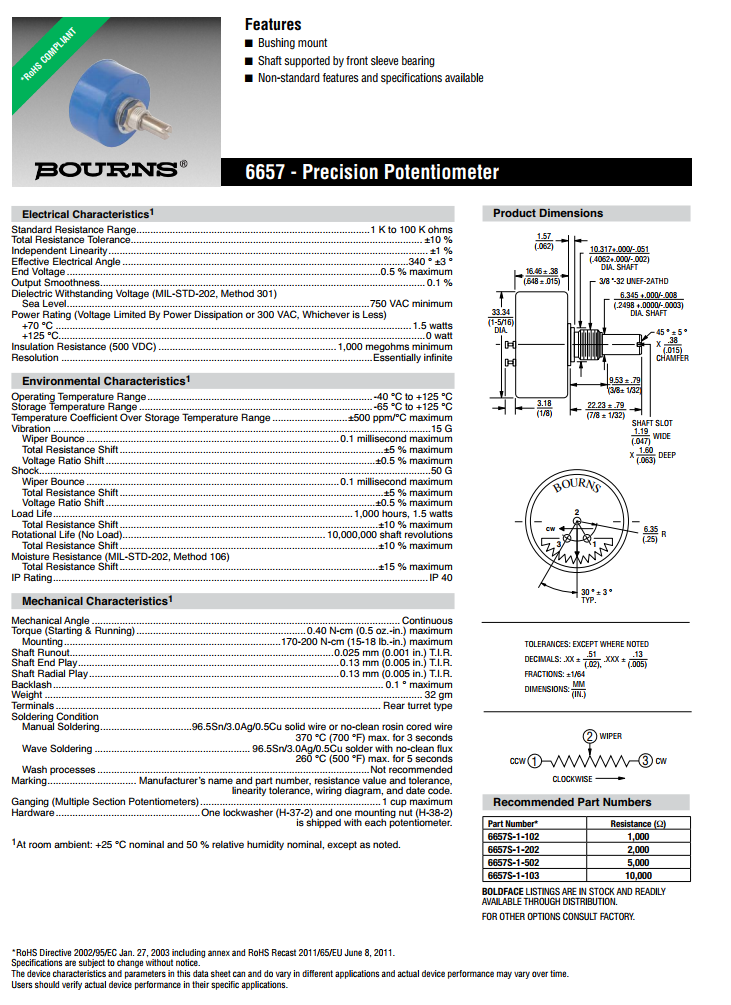 簡述: BOURNS單轉(zhuǎn)型精密電位器6657