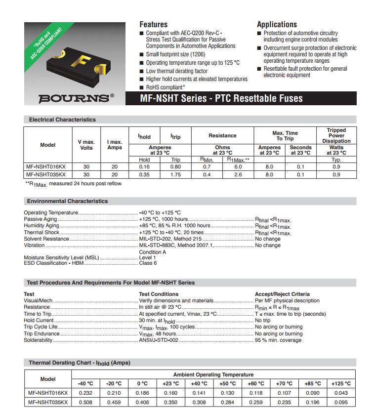 產(chǎn)品名稱: BOURNS 車規(guī)保險(xiǎn)絲 MF-NSHT AEC-Q200認(rèn)證