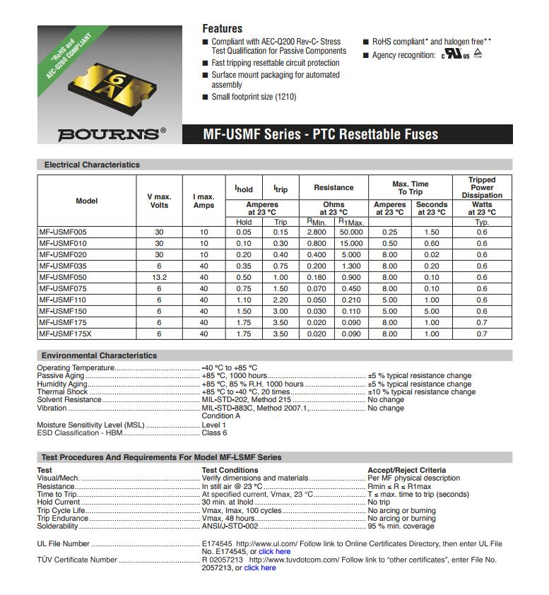 產品名稱: BOURNS 車規(guī)保險絲 MF-USMF AEC-Q200認證