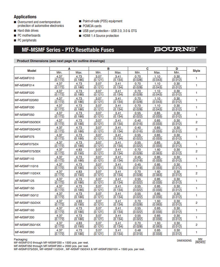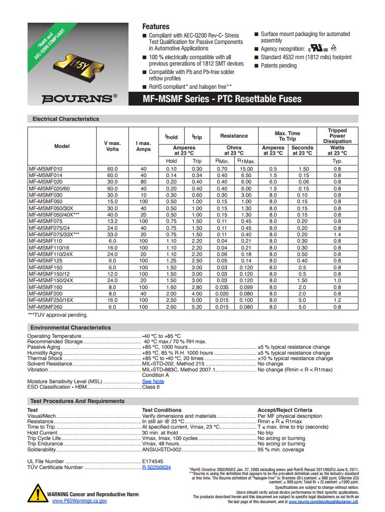 產(chǎn)品名稱: BOURNS 車規(guī)保險絲 MF-MSMFAEC-Q200認證
