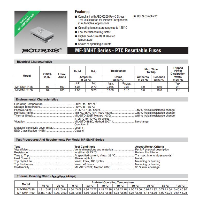 簡述: BOURNS 車規(guī)保險絲 MF-SMHT AEC-Q200認證 車規(guī)認證保險絲 車規(guī)級保險絲