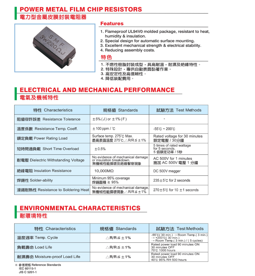 產(chǎn)品名稱: SMF 電力型金屬皮膜封裝電阻器