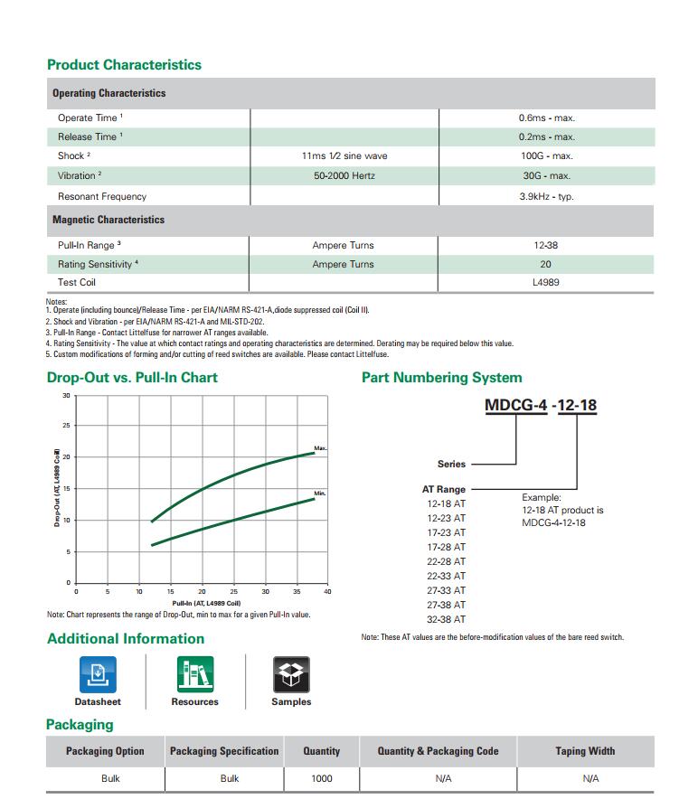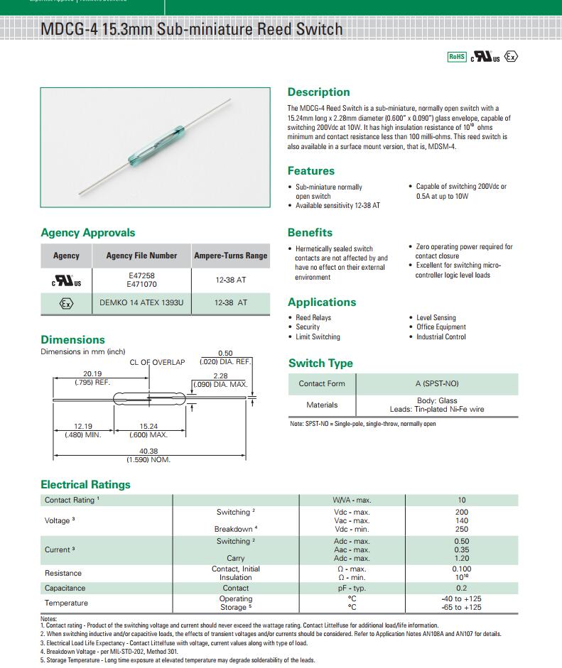 產(chǎn)品名稱: MDCG-4 系列 - 15.3mm磁簧開關(guān)|HAMLIN|干簧管