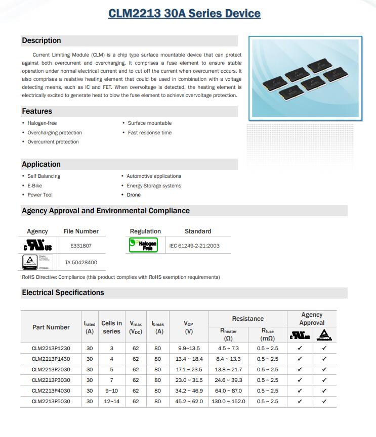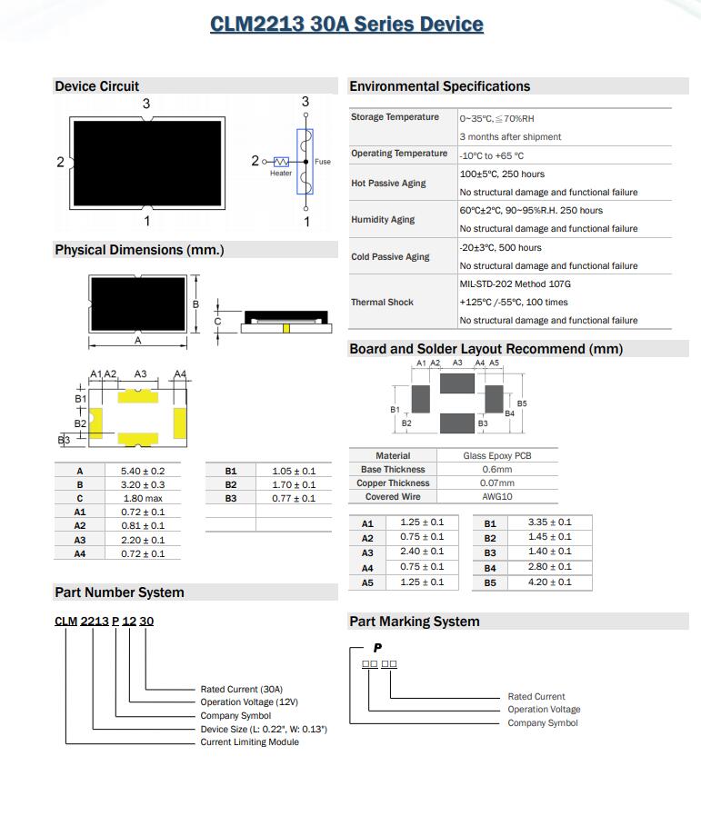 產(chǎn)品名稱: CLM2213 30A Series Device 三端保險絲
