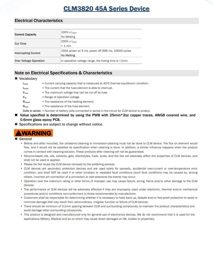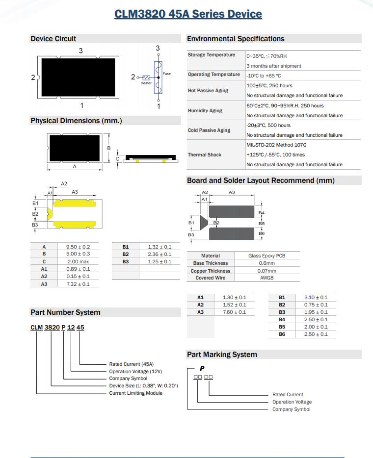 產(chǎn)品名稱: CLM3820 45A Series Device 三端保險絲