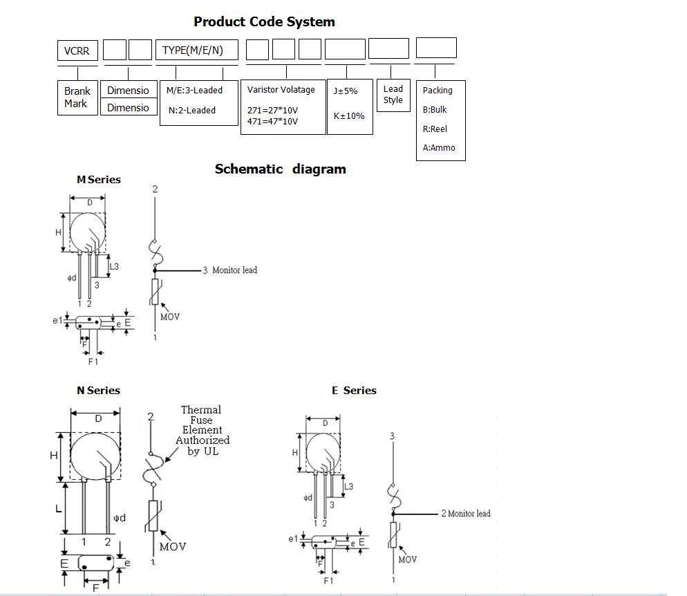 簡述: 壓敏電壓從(200V-1800V) ?符合RoHS,Reach標準,無鉛 ?專利的集成熱保護裝置 - ?旨在促進符合UL1449第3版SPD產(chǎn)品 ?高峰值浪涌電流額定值高達10kA ?波可焊 ?標準引線形式和間距選項 ?低泄漏 ?-55°C至+ 85°C的工作溫度范圍