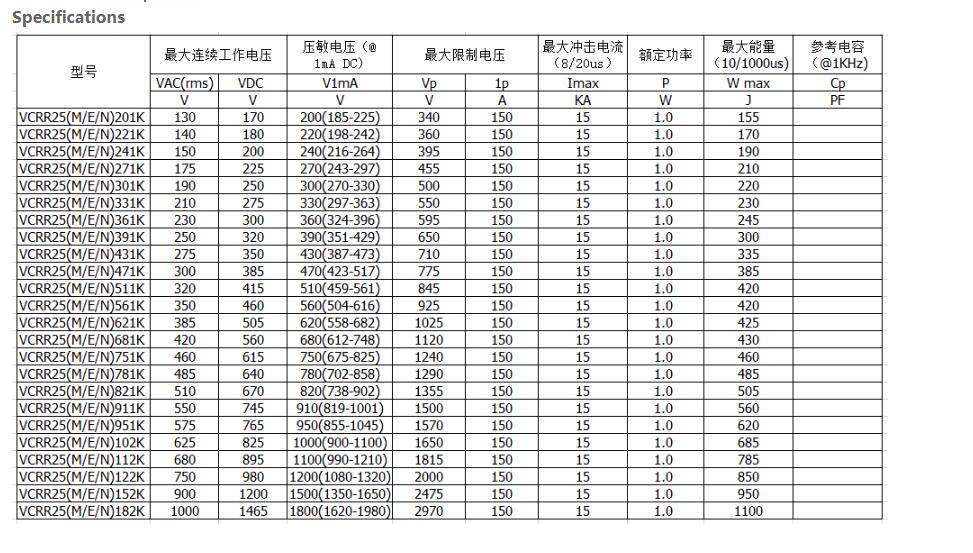 產(chǎn)品名稱: TMOV25D系列(有方片和圓片)
