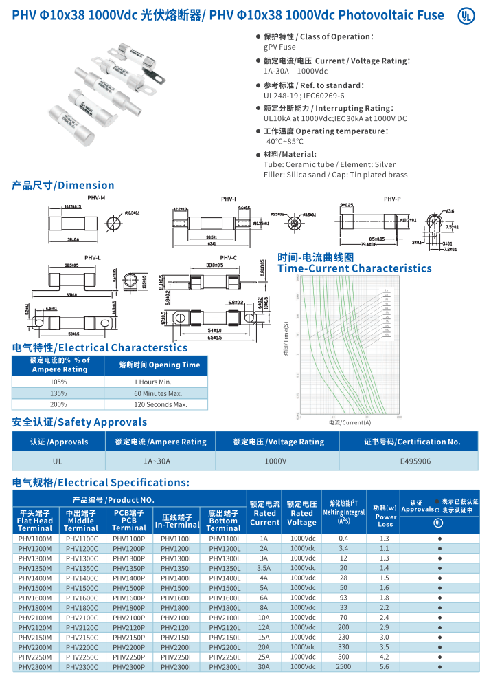 簡(jiǎn)述: 光伏熔斷器 PHV 10*38 1000VDC Photovoltaic Fuse