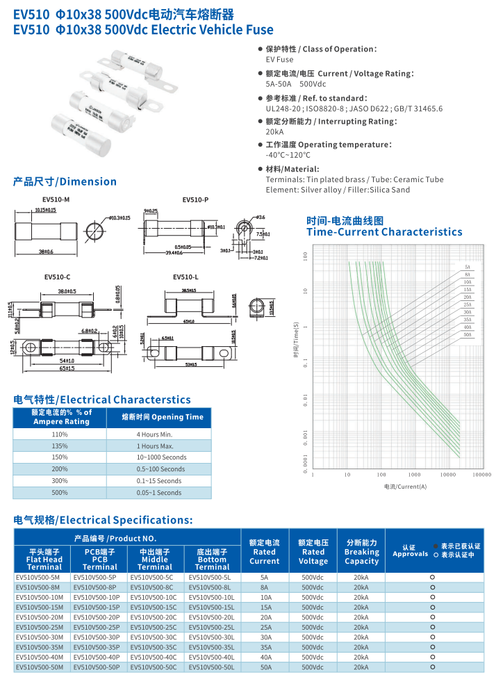 簡(jiǎn)述: 電動(dòng)汽車熔斷器EV510 10*38 Electric Vehicle Fuse