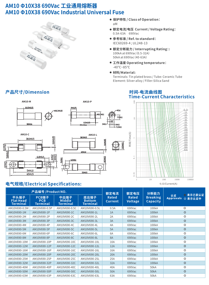 產品名稱: 工業(yè)通用熔斷器AM10 10*38 690VAC INDUSTRIAL Universal Fuse